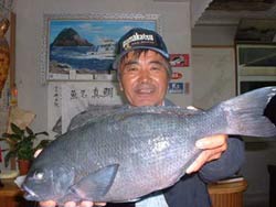 2004/01/09 ダイエーホークスの城島選手は自己記録の 2.2kg のクチブトをゲット! 見事 50cm 超えを達成し、釣りダービークロの部3位に入賞しました。